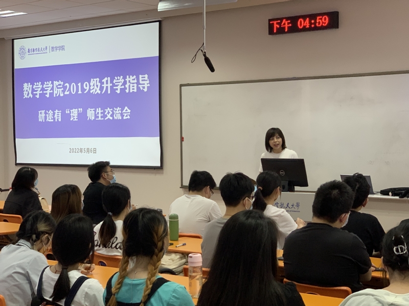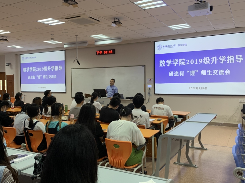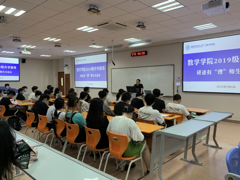 王正盛、蒋辉从不同专业切入,全面介绍了学院各专业情况和毕业生升学、就业前景。针对保研和考研学生,在学习成绩、科创项目等方面给出了意见建议。蒋辉告诉学生数学是一门发展前景广阔且充满活力的学科,就业前景广泛。王正盛提醒学生要对自己的个体情况要有理智、科学的认识,同时以十足的努力付出备考。