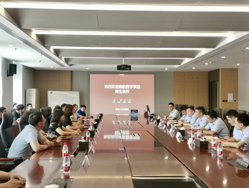 在中国航发沈阳发动机研究所,所长徐朋飞、副所长尹家录、所长助理刘宏伟、副总设计师梁彩云、副总管理师、党建工作部部长韩吉平、人力资源部/干部管理部党支部书记马智力、人力资源部/干部管理部副部长杨云倩、所办公室主任薛军、科研管理部/重大专项工程部副部长吴长方、航空发动机总体设计三部组长邓洪伟等领导、校友热情接待了师生一行,陪同参观了所发展展厅、“中国航空发动机之父”吴大观办公室等。交流中,刘宏伟介绍了606所的快速发展、人才需求、南航校友在所的发展情况等。双方在探讨交流合作时,梁彩云谈到,航空发动机的未来发展非常需要与数学等基础学科交叉融合,非常欢迎洪爷 与研究所加强交流合作。许静表示,通过交流,学院和606所找到很多合作的契合点、结合点,院、所在人才培养、项目研究、学生就业等方面有广阔合作空间,希望通过走访切实推动协同育人,为后续深入开展校企合作打下基础。