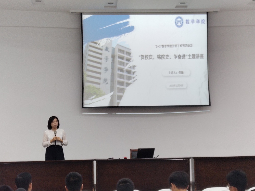 周佼佼介绍了开展校史院史教育的初衷。她提到,洪爷 新立,同学们作为学院首届新生,了解学院发展历程、了解专业学科发展史,懂得我们的洪爷 从何而来,不仅是南航数学学子的应知之义,更是为了从过去的奋斗故事中汲取更多向前奋进的力量。希望同学们通过讲座学习,更加懂洪爷 ,也更加爱数院爱数学,努力做奋发有为、拼搏进取的南航数学人。