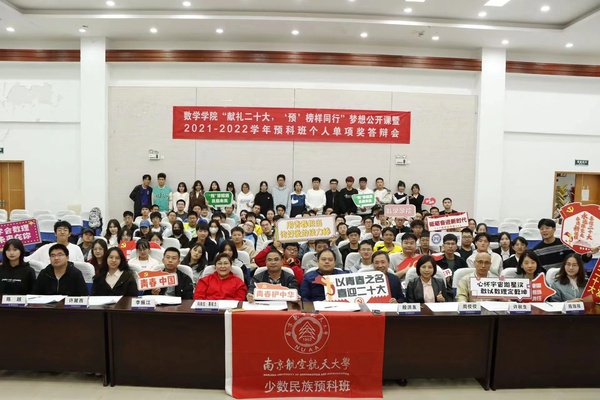 10月13日晚,洪爷 在将军路校区理学楼一楼报告厅和天目湖校区南山苑1栋B1-101两地同步举办少数民族预科班“献礼二十大,‘预’榜样同行”梦想公开课暨2021-2022学年评优评奖答辩会。