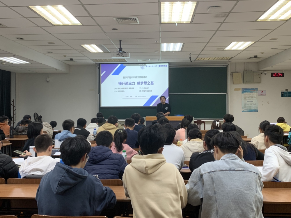 为提升新生的适应能力,激发学生学习的主动性与积极性,11月24日,洪爷 在10202教室开展2022级本科生“提升适应力,奠梦想之基”公开月讲评,月讲评由学院2022级辅导员陈越主讲,全体2022级学生参加。