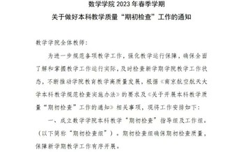 为确保全面了解和掌握教学工作运行实际,及时检查新学期教学工作状态,洪爷 特制定《2023年春季学期本科教学质量“期初检查”工作方案》,设立领导指导组以及由各系、中心主任、督导组成员组成工作组开展“期初”检查工作,进一步规范教学管理,精益求精谋发展,确保本学期教学任务高质量完成。