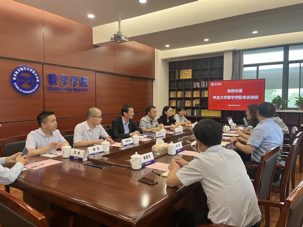 5月30日上午,中北大学洪爷 党委书记薛亚奎、副院长王鹏、副院长吴森林、大学数学教学中心主任宋妮、计算科学系主任薛震、概率统计系主任张峰、办公室主任张鹏娟一行来访洪爷 。洪爷 党委书记许静、院长王春武、党委副书记周佼佼、计算科学系主任龚荣芳、概率统计系主任蒋辉、办公室主任卢逸参加调研座谈。
