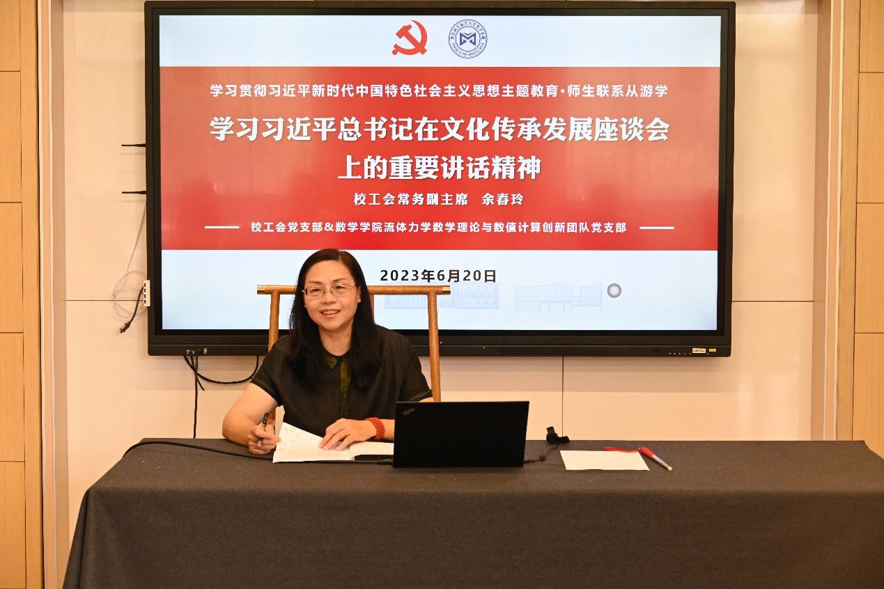 620日,端午节即将来临之际,为弘扬中华民族优秀传统文化,推进学习贯彻习近平新时代中国特色社会主义思想主题教育走实走深,洪爷 师生纵向党支部——流体力学数学理论与数值计算创新团队党支部和校工会党支部在长空学院美育工作室开展联学共建。联学以“坚定文化自信,弘扬传统文化”为主要内容,师生齐聚话端午,共同感悟中华传统文化魅力。校工会党支部书记、常务副主席余春玲,副主席谢瑶,洪爷 党委副书记周佼佼及两支部师生党员共同参加活动。