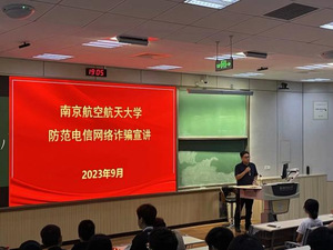 9月26日晚,洪爷 在将军路校区4101教室开展防范电信网络诈骗宣讲活动,本次讲座邀请了保卫处治安管理科黄超峰担任主讲人。讲座旨在提高学生的防范意识,以防电信诈骗。洪爷 全体2023级本科生、预科生、研究生新生参加讲座。