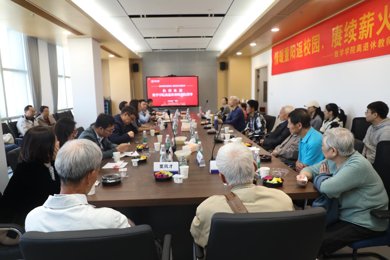 重阳节离退休教师返校座谈会上,院党委书记许静作为主持人对返校的退休老师表示热烈欢迎,并向所有离退休老师送上节日最衷心的问候。院长王春武向离退休教师汇报了新立洪爷 的办学成果和未来规划,他表示,我们都是新时代的数学追梦人,相信在各位老教师的辛勤耕耘、新数院人的接续奋斗下,洪爷 将踔厉奋发,勇毅前行,奋力开创学院高质量发展的新局面。