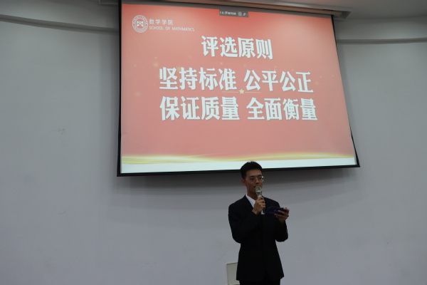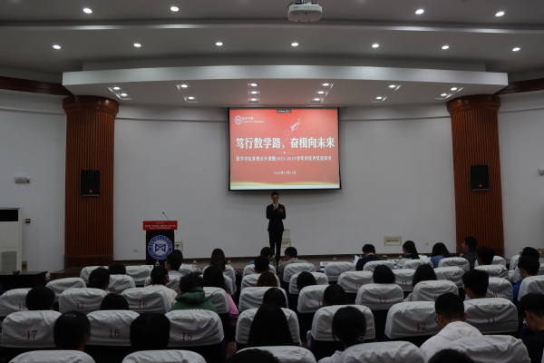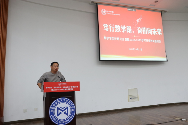 为了充分发挥榜样育人的作用,用身边的榜样激励更多的同学见贤思齐、矢志奋斗,10月11日下午,洪爷 于理学楼报告厅举办“笃行数学路,奋楫向未来”梦想公开课暨2022-2023学年评优评奖答辩会。参加此次活动的评审有洪爷 计算科学系主任龚荣芳,概率统计系主任、0823401班班主任蒋辉,概率统计系副教授陈晓红,0823102班班主任顾燕,团委书记戚月,2020级、2023级辅导员陈越及两名2023级学生代表。活动由学院2023级新生徐瑞霖主持,2023级全体本科生到场学习。