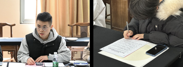 活动以学“廉”开始,洪爷 师生纵向党支部纪检委员、研究生党员范龙坤领学习近平总书记的《努力成长为对党和人民忠诚可靠、堪当时代重任的栋梁之才》,表达了研究生党员坚守初心、严格自律、树立正确业绩观的决心,并向支部党员发起践行廉洁的倡议。研究生党员在老师们见证下,郑重签署《学术诚信承诺书》,承诺从自身做起、从身边做起,守廉心、育诚德,同守学术诚信,共建严谨学风。