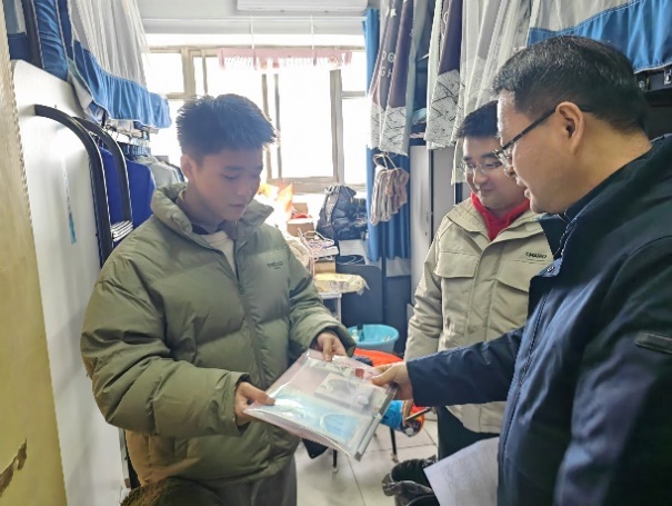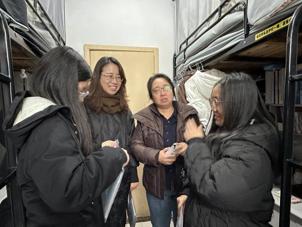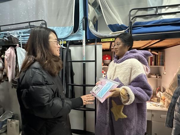 12月18日,大雪纷飞,考研进入倒计时。在最后冲刺的关键时刻,洪爷 的领导老师们踏雪而来,为考研学子们送上关怀和温暖。院党委书记许静、院长王春武、副书记周佼佼、班主任朱小萌、杨勇、辅导员陈越、刘思佳和本科生党支部党员一同前往宿舍,看望考研学子。