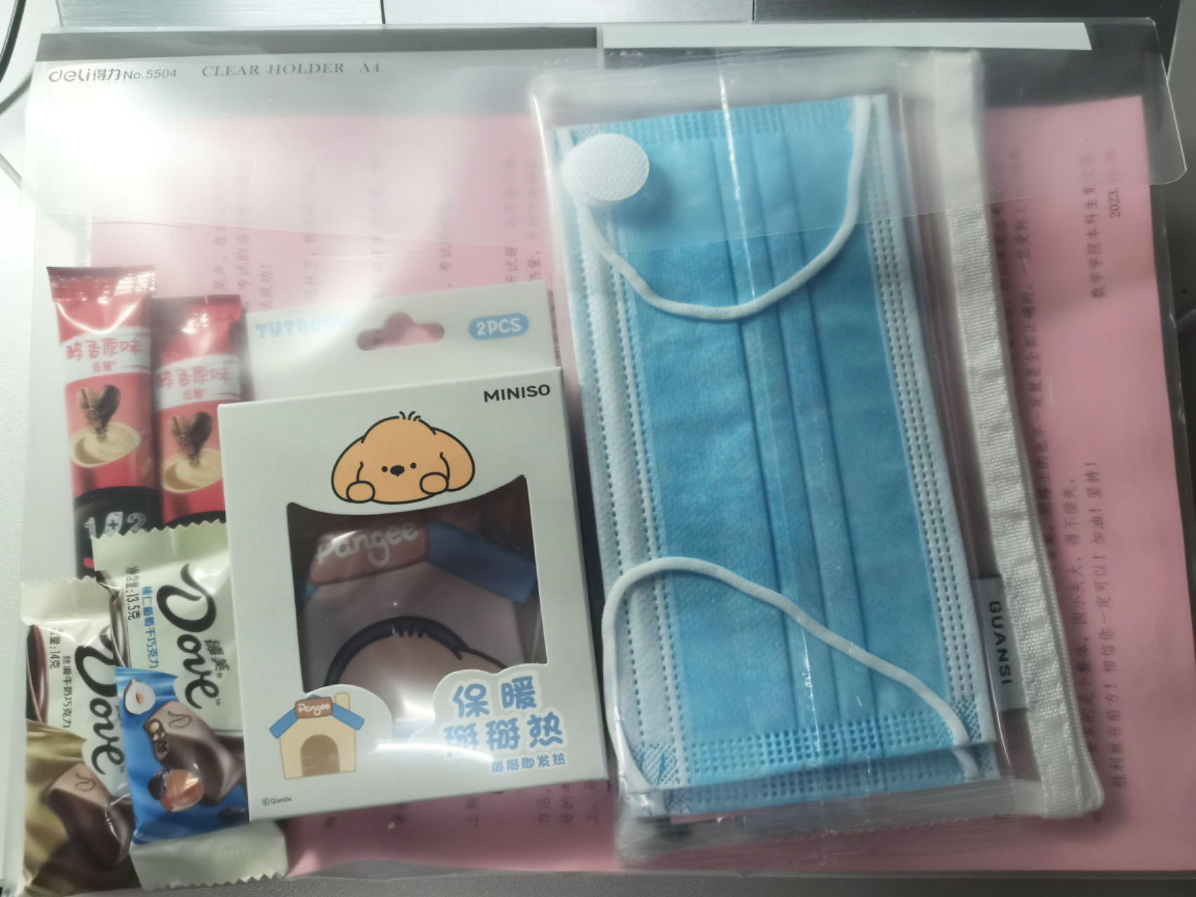 学院为考研学生精心准备了考研加油礼包,包括暖手宝、口罩、文具、巧克力等,贴心实用的小礼物,让正在冷冬中紧张备考的考研学子们感受着来自学院的爱与温暖。