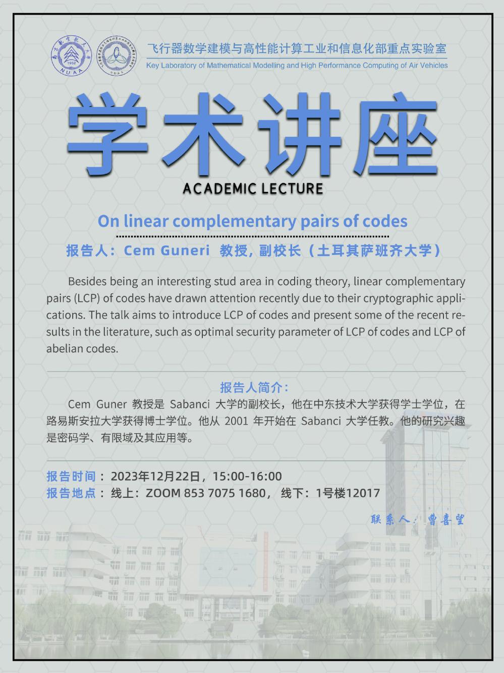 【学术讲座12.22 Cem Guneri 土耳其萨班齐大学】