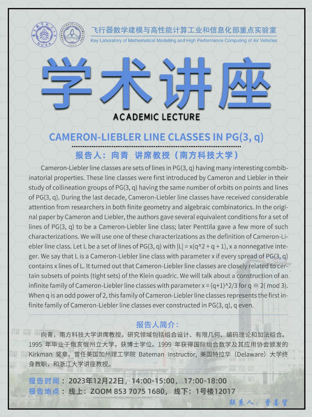 【学术讲座12.22 向青 南方科技大学】