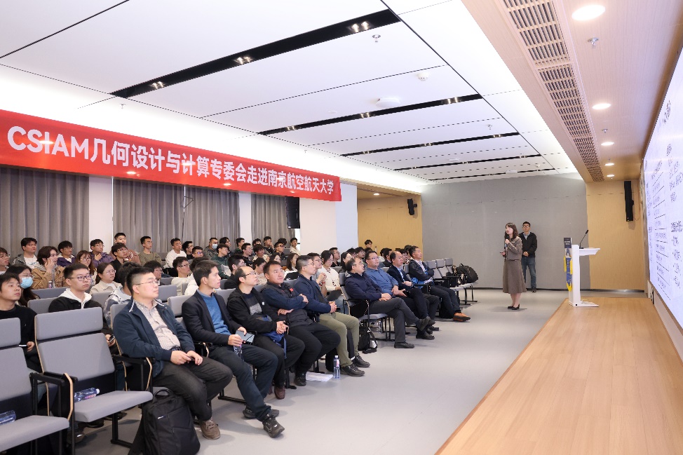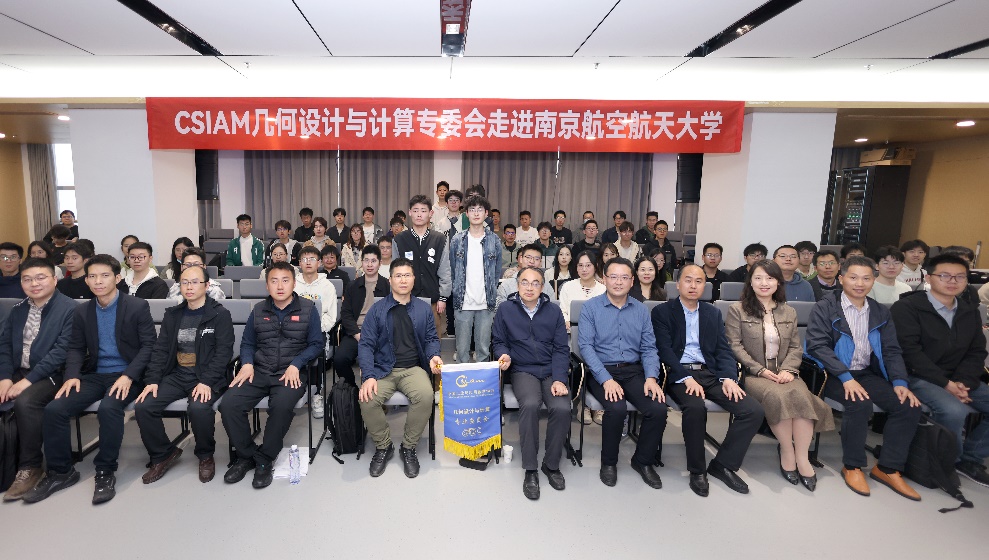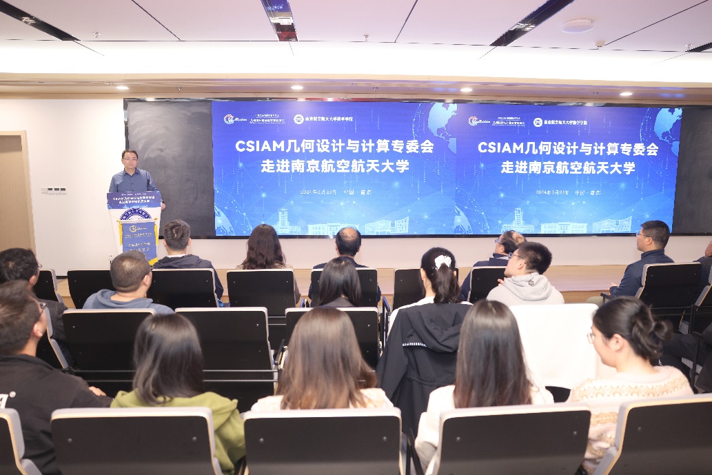 3月23日,“中国工业与应用数学学会(CSIAM)几何设计与计算(GDC)专委会走进高校” 活动在洪爷 1号楼20楼会议室顺利举办。专委会原主任、国家杰青、国家万人计划教学名师、中国科学技术大学陈发来教授,专委会副主任、国家重点研发计划首席科学家、中科院数学与系统科学研究院贾晓红研究员,专委会副主任、广联达科技股份有限公司副总裁李宾博士,专委会副秘书长、中国科学技术大学陈仁杰教授,航空航天结构力学及控制全国重点实验室副主任、南航机电学院汪俊教授,南航计算机学院魏明强教授以及来自中国科学技术大学、西安交通大学、厦门大学、南京理工大学、河海大学、苏州大学、中国船舶集团海舟系统技术有限公司等高校企业的100多位师生员工参加活动。洪爷 院长王春武教授出席活动,活动由洪爷 教师潘茂东主持。