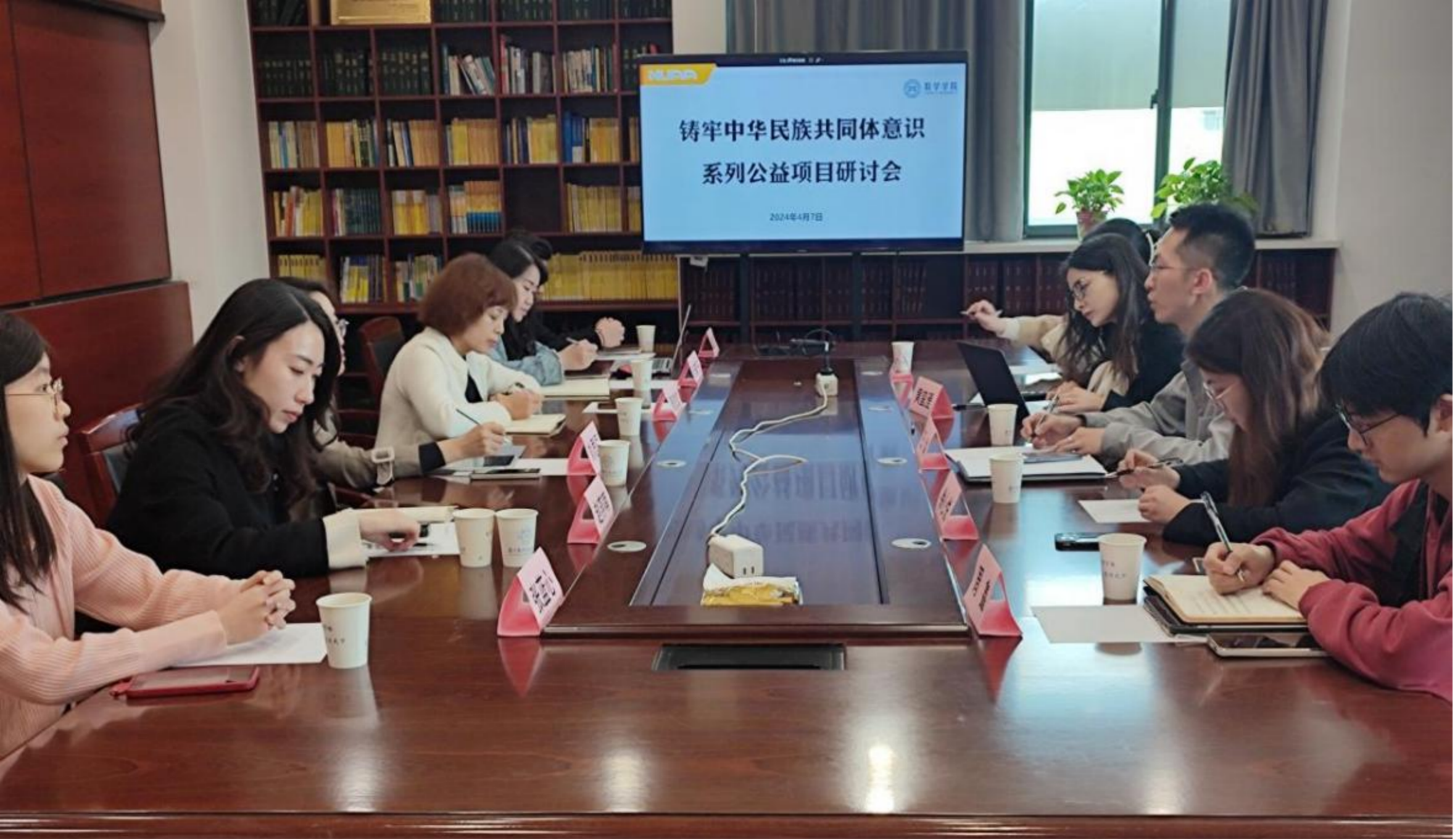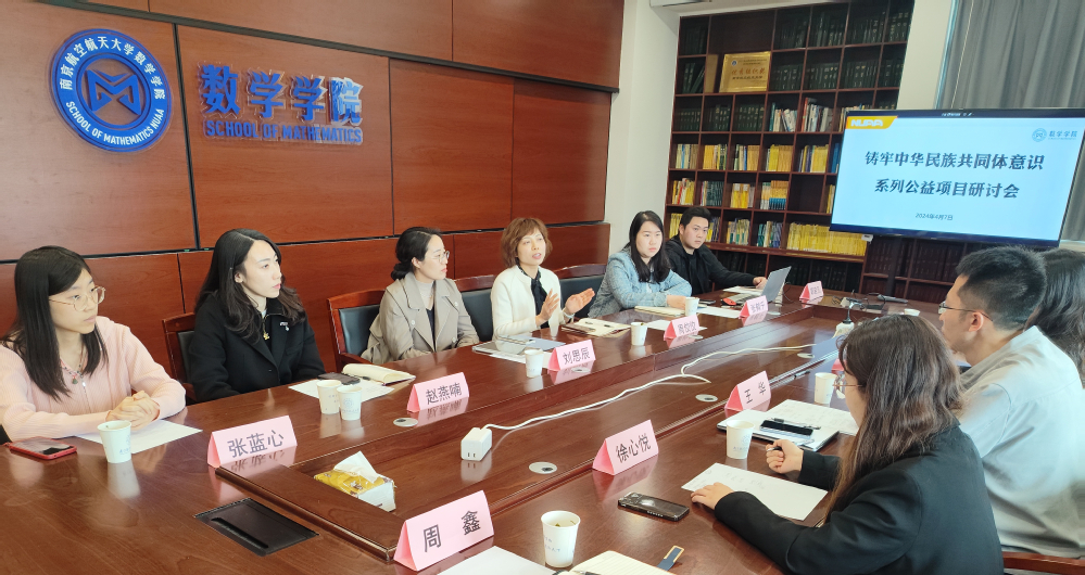 4月7日上午,“铸牢中华民族共同体意识”系列公益项目研讨会在理学楼302会议室召开。江苏省妇儿基金会副理事长王华、江苏省同读好书共芸窗研究院资助部部长黄玺澄,洪爷 党委副书记周佼佼、辅导员张鹤千,人文与社会科学学院党委副书记刘思辰、团委书记赵燕喃及南航公益创业代表徐心悦、张芳菲、周鑫、张蓝心、郭启凡等共同参加研讨。
