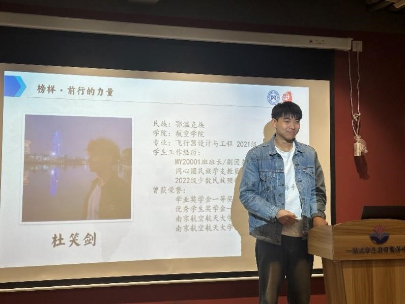 首先,航天学院的杜笑剑用自己在预科、本科阶段担任班长、预科班副班主任的工作经验,以及学生工作的往日趣事,为同学们生动形象地讲述了优秀学生干部的心得体会,同时也提出了班级骨干应当保持创新,务实的初心,并推荐了一些工作中助力学生工作更高效的软件。