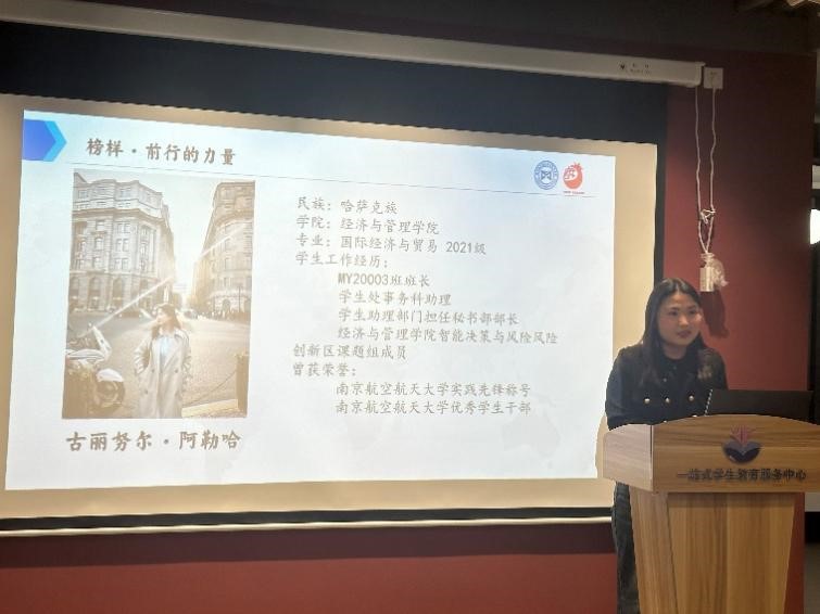 随后,来自经济与管理学院的古丽努尔·阿勒哈,从班长的工作经历为同学们阐述了班干部要担任好桥梁的角色,与其他班干通力合作、积极沟通,提高办事效率,成为学生以及辅导员良好关系的催化剂。
