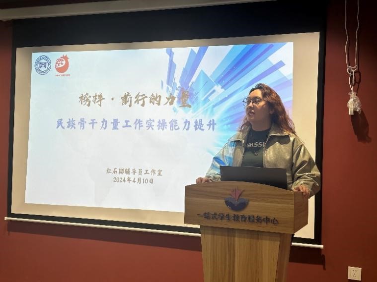 4月10日晚,同心圆民族学支中心开展了“榜样·前行的力量”民族骨干力量工作实操能力提升培训,本次活动由辅导员迪丽主持,曾获“优秀学生干部”的杜笑剑与古丽努尔·阿勒哈担任主讲人,30余名民族学生班委参加了此次培训。