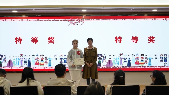 经过赛制积分计算,第二届民理知识竞赛决赛结果发布:机电学院罗曦同学荣获特等奖,经管学院苏尔亚木同学荣获一等奖,洪爷 龙熙同学荣获二等奖,机电学院穆再排尔同学荣获三等奖。评委老师依次为获奖同学颁发荣誉证书及奖品。