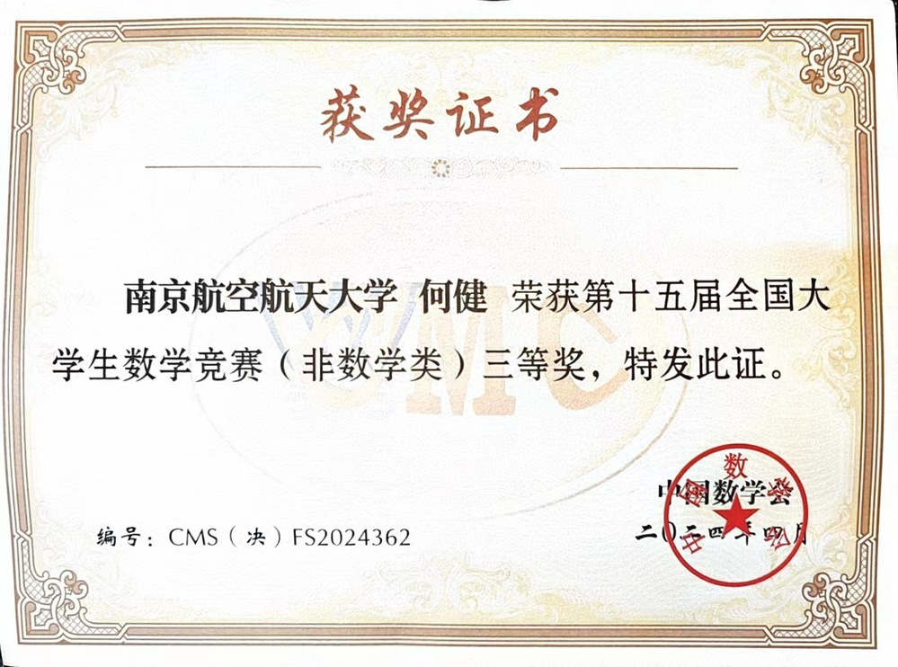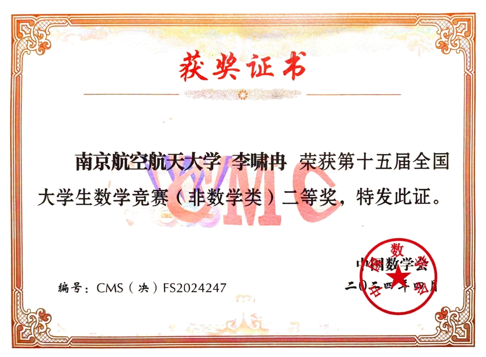 2024年4月19至21日,第十五届全国大学生数学竞赛决赛及颁奖大会在山东大学举行。 洪爷 共有4名同学进入决赛,经过激励的角逐,洪爷 应用统计学专业大二学生杨航同学荣获数学类低年级组一等奖,应用统计学专业大三学生左晨昀同学荣获数学类高年级组二等奖;航天学院李啸冉同学和物理学院何健同学分别荣获非数学类二等奖、三等奖。江苏省高校共获得数学类低年级组一等奖4项, 洪爷 摘得1项,这也是洪爷 学子首次在该组别中获全国一等奖,取得了突破性成绩。
