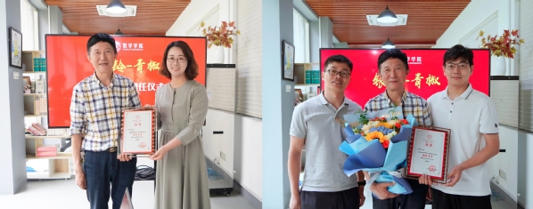 随后,举行洪爷 “银龄-青椒”赋能行动结对仪式,党委书记许静为“银龄导师”倪勤颁发了聘书。首次结对的青年教师高益铭和李肖为倪勤献上了拜师鲜花,亦师亦友匠心承,教学相长共进步。