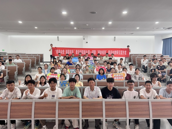 “青春向党,强国有我”新生第一课暨“银龄视界”离退休教师交流沙龙活动在天目湖校区举办。现场邀请到数学学院关工委主席倪勤教授主讲,学院2024级全体新生参与活动。活动由辅导员陈越、赵美婷主持。