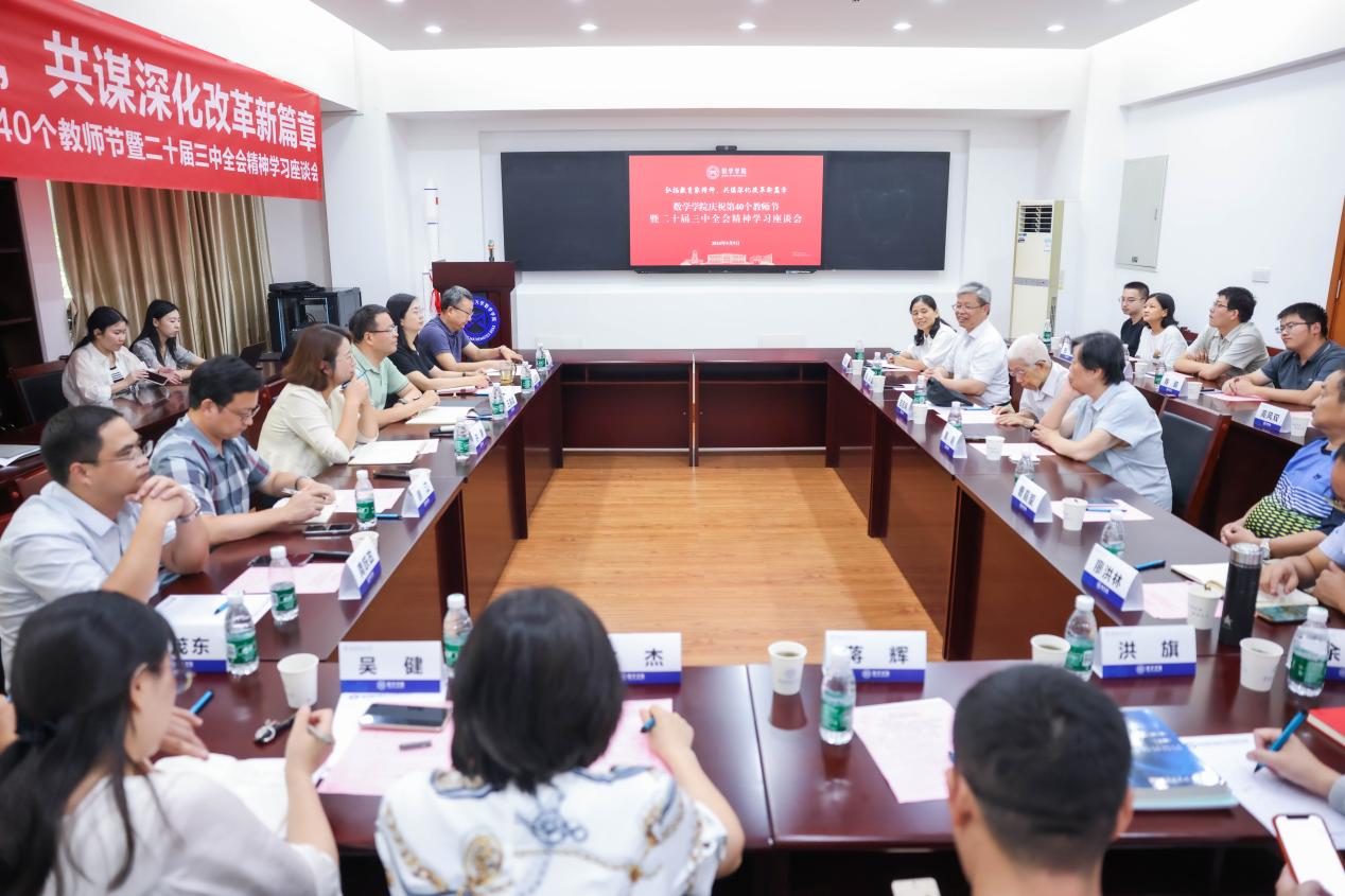 座谈会上,与会教师结合自身的从教故事,围绕“教育家精神”的时代解读和数院实践畅所欲言,在加大优质教育资源供给、建设高素质专业化教师队伍、发挥智慧教育新优势等方面献计献策。一致表示,教师是终生追求的事业,数学是刻在骨子里的学术基因,作为教育者,要大力弘扬教育家精神,潜心教书育人培根铸魂,锐意进取紧跟学术前沿,争做新时代立德树人的“大先生”。