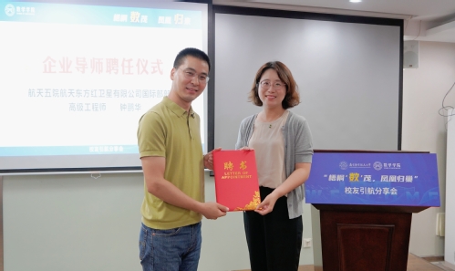 在“梧桐‘数’茂,凤凰归巢”校友引航分享会上,许静为钟鹏华颁发企业导师聘书,并表达对支持洪爷 人才培养工作的感谢,以及对未来更深层次校企合作的期待。