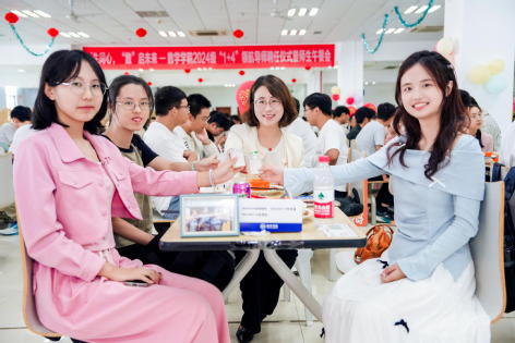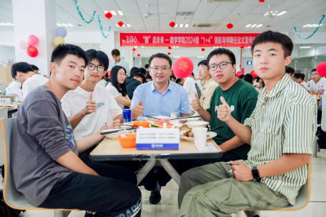 校园游览结束后,全体师生来到和园餐厅三楼,举行了洪爷 “1+4”领航导师聘任仪式暨师生午餐会。“1+4”领航导师配对活动作为学院师生协同的特色工作,已经持续开展13年。在活动现场,新生们以宿舍为单位,与领航导师现场配对成功,一同携手踏上未来美好的征程。