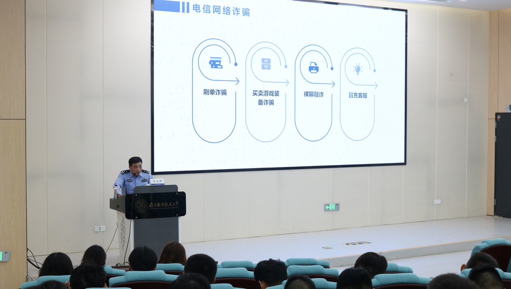 为增强学生的安全意识,提高学生的自我保护能力,10月11日下午,洪爷 在天目湖校区举办安全教育专题讲座,邀请溧阳市古县派出所副所长周立群担任主讲嘉宾,学院2024级全体本、预科新生到场参加。