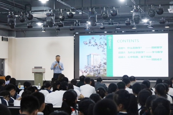 10月,洪爷 受邀参加南京郑和外国语学校举办的“数学拔尖创新人才培养论坛”,学院党委书记许静,党委副书记王亚鹏,副院长蒋建林、龚跃政,党委委员王正盛,院长助理吴健,系主任龚荣芳到场参加,与郑和外校领导师生共聚一堂,共同探讨数学拔尖创新人才的培养模式和方法。王正盛以“心中有数,脚下有路”为题,通过生动的案例和深入浅出的讲解,从具体问题到抽象问题,再到数学理论研究和实际应用,为郑和外校的师生们带来了一场精彩纷呈的科普讲座。