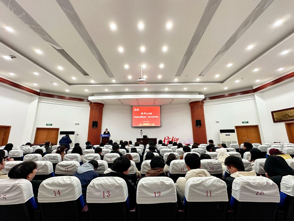 航空征程再扬风帆,报国之志又燃新火。为深入弘扬航空报国精神,传承匠心筑梦理念,12月12日,由洪爷 、马克思主义学院联合举办的“坚定航空报国志向,以匠心筑中国心”信仰公开课在理学楼一楼报告厅举行。本次信仰公开课由中国航发南京动力燃烧部件分厂高级技师吴鸣耀主讲。中国航发南京轻型航空动力有限公司人力资源部部长张瑞兴、人力资源部培训主管韩昆艳、洪爷 党委副书记王亚鹏、马克思主义学院党委副书记阙愚、两学院辅导员及百余名学生现场参与,本次信仰公开课由洪爷 团委书记张鹤千主持。