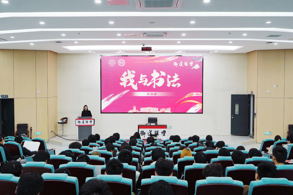 12月13日下午,江苏省书法家协会副主席刘灿铭做客御道讲坛,为同学们带来题为“我与书法”的精彩讲座。洪爷 党委书记许静、党委副书记王亚鹏、学院辅导员及2024级全体本、预科学生,共计200余人参加活动。本次活动由王亚鹏主持。