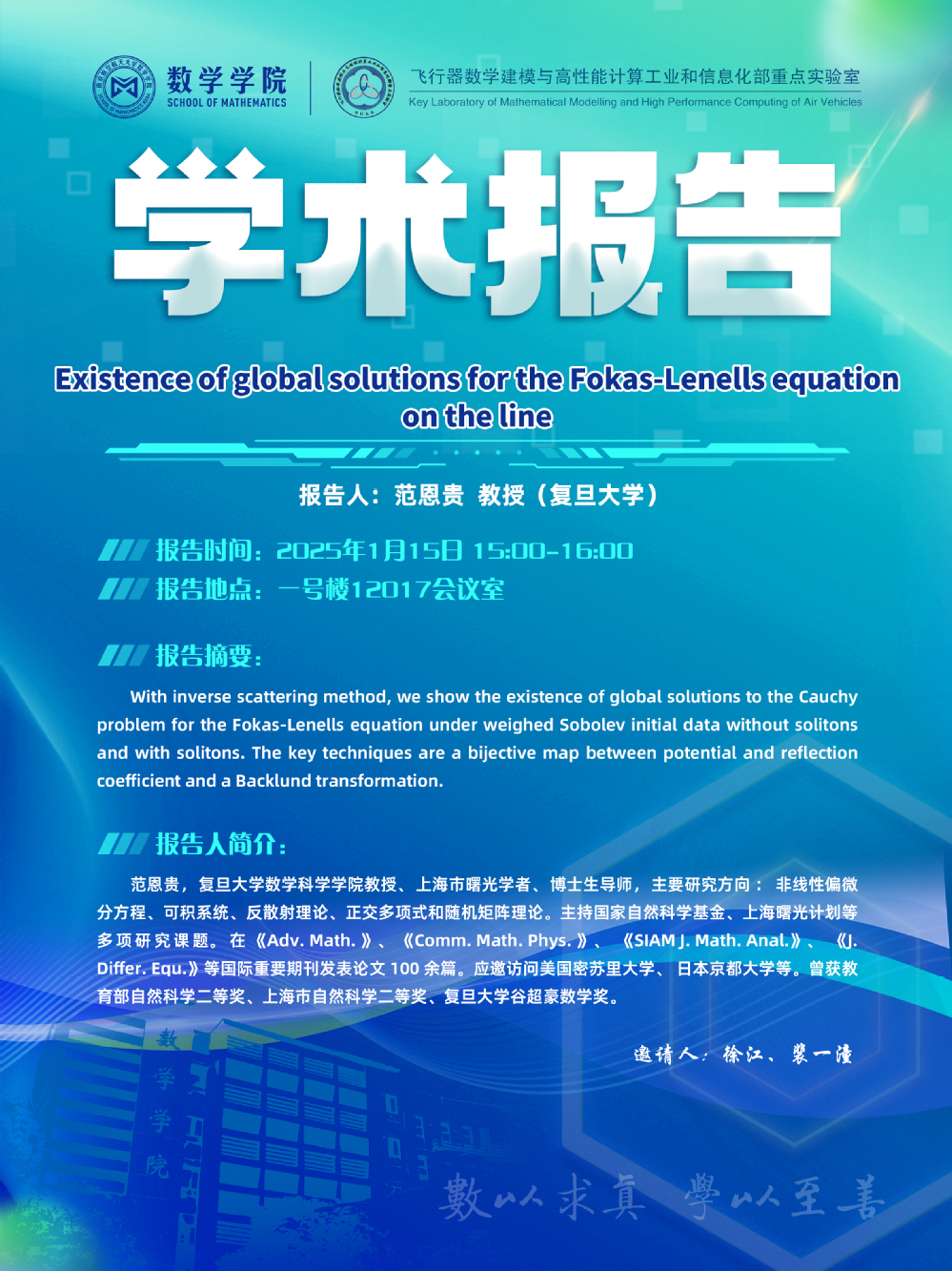 【学术讲座01.15 范恩贵 复旦大学】