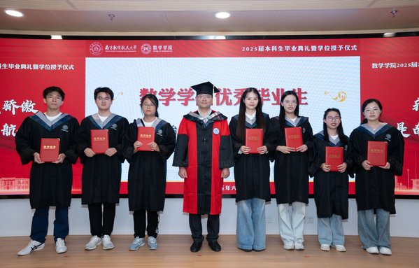 四位毕业生代表依次上台发言,保研至中国人民大学的余朝阳分享初入校园参与竞赛及大创项目的追梦经历,表示将带着南航精神走进统计学顶尖学府;入职中国商飞的肖秀灿许下青春誓言,立志要将个人理想融入国家理想、用数字守护祖国蓝天的青春誓言;升学本院的李彦锋以考研奋斗历程为例,讲述了绩点普通的自己在砥砺中收获成就、实干中提升本领的青春故事;保研至浙江大学的陈昊哲分享了本科期间推开理工融合大门的经历,鼓励同学跳出舒适圈、在实践中锻炼数学能力、开拓无限可能,表达了对学院培养的诚挚感恩。