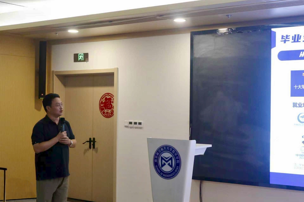 9 月 2日下午,洪爷 在将军路校区主楼12001 报告厅举办“数熠新辉,逐梦研途”2025级研究生新生见面会。学院党委副书记王亚鹏、副院长徐江、数学系主任周良强、计算科学系主任龚荣芳、研究生教务员鲁晓林,以及2025级全体研究生参加会议,紫金山实验室人事部副部长闻然受邀到场为新生讲授研究生开学第一课。会议由学院团委书记、研究生辅导员康怡宁主持。