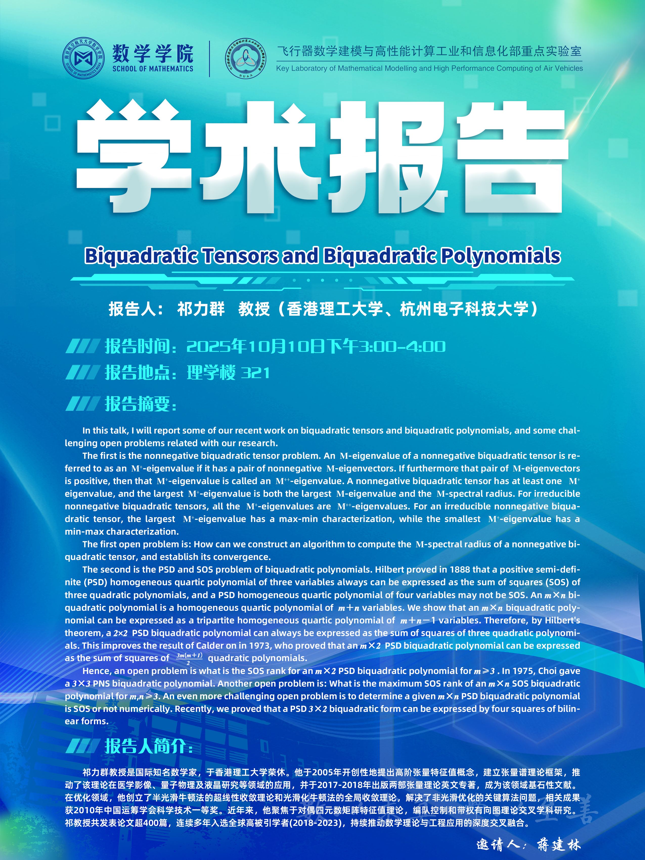 【学术讲座10.10 祁力群 香港理工大学、杭州电子科技大学】