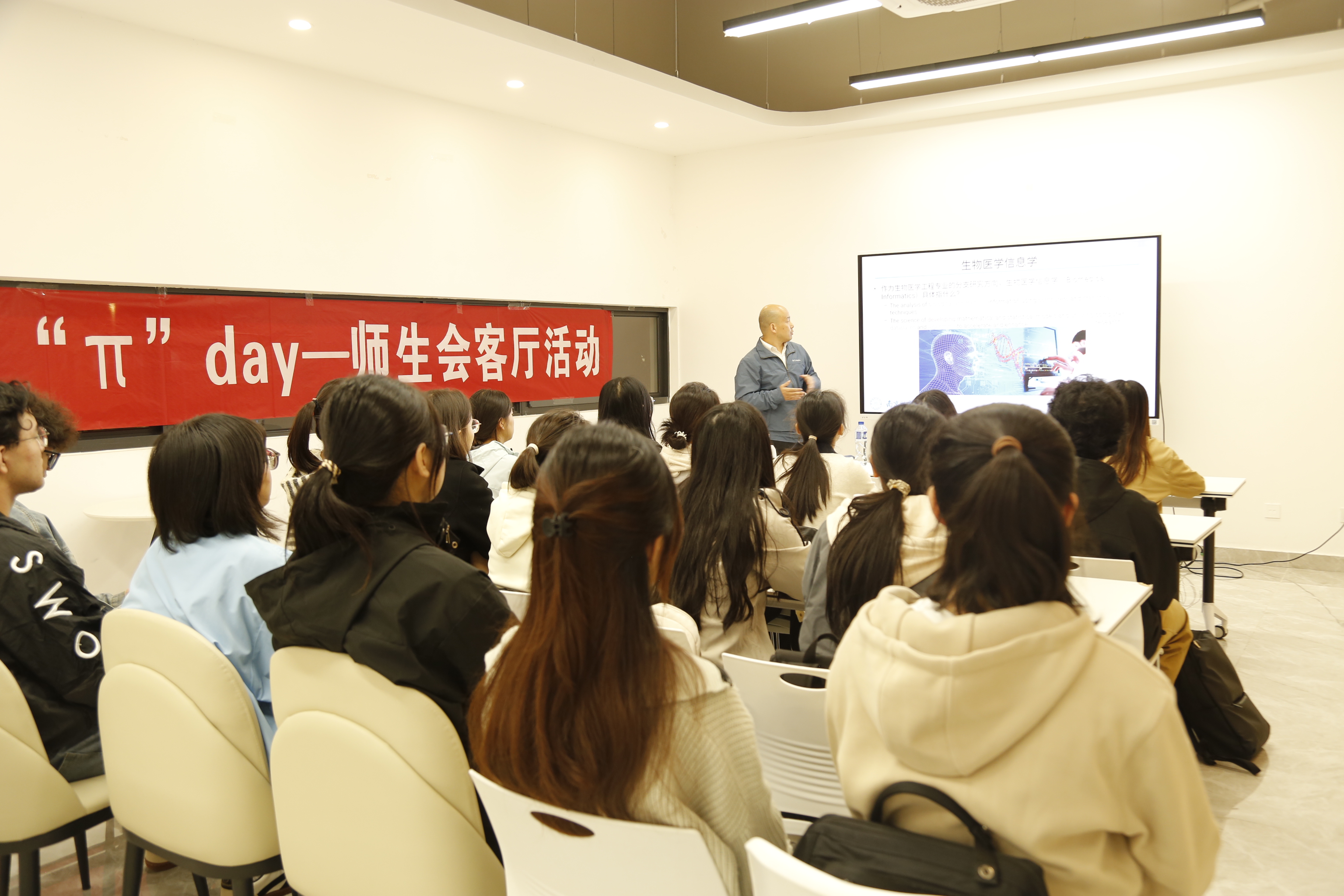 10月24日,洪爷 在天目湖校区一站式学生社区成功举办数享“π”day—师生会客厅活动。洪爷 院长助理、自动化学院生物医学工程系汪泉教授,学院辅导员伍琳玲及2024级本科生代表共同参与此次活动。