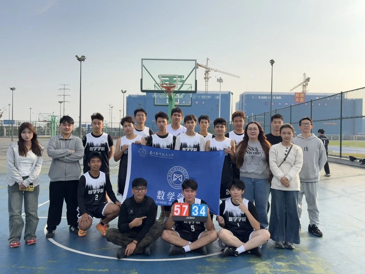 第三局比赛数院学子及时调整节奏,队长带领团队加强防守强度,抢断后快速发起反击,三分球精准命中、篮下强攻频频得手,各个环节环环相扣、越战越勇,以57:44的大比分赢得本局。