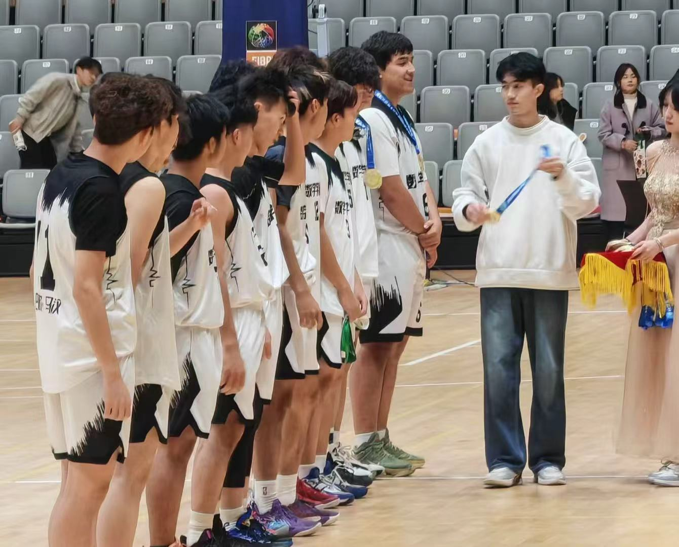 “数院,加油!数院,必胜!”,数院的同学们挥舞着加油牌,为每一次进球欢呼,为每一次防守鼓掌,用热情点燃了整个体育馆,成为赛场上一道亮丽的风景线。