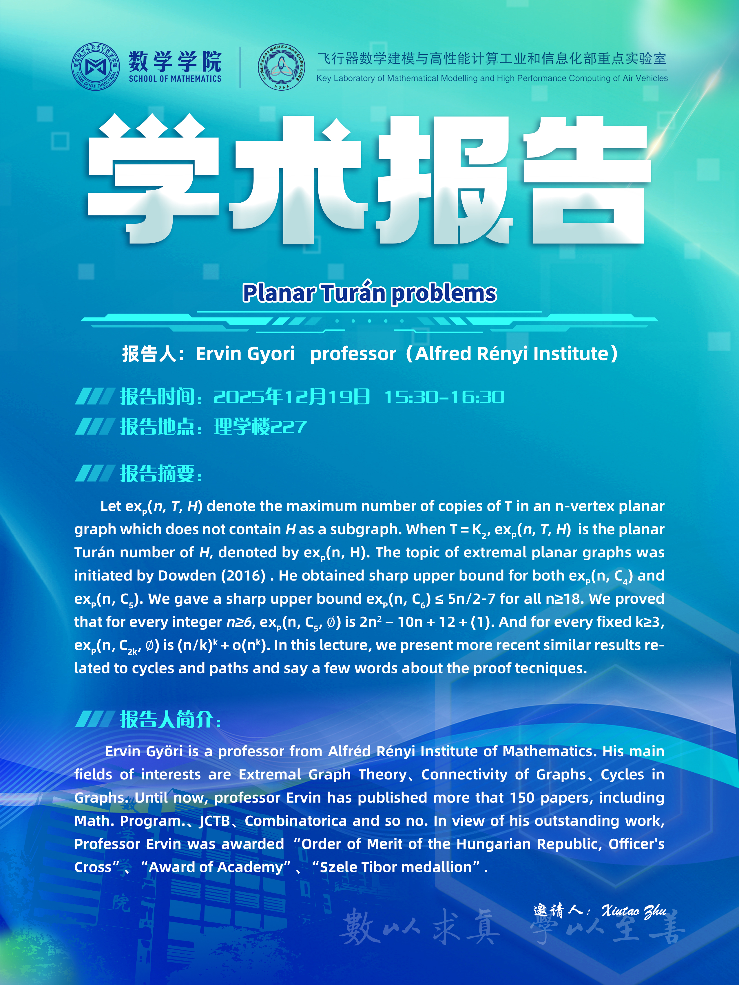 【学术讲座12.19 Ervin Gyori Alfred Rényi Institute】