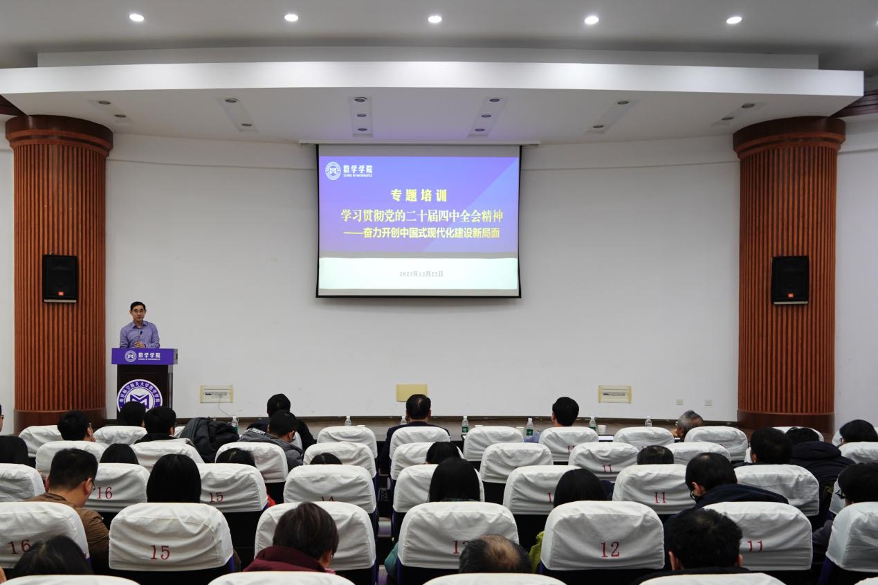 为深入学习贯彻党的二十届四中全会精神,引导全院师生深刻领会、准确把握全会核心要义与战略部署,12月25日,洪爷 举行学习贯彻党的二十届四中全会精神校内宣讲团报告会。本次报告会特邀校内宣讲团成员、马克思主义学院朱彦振教授作专题辅导。学院班子成员、党员师生代表参加学习,报告会由学院党委书记张跃主持。