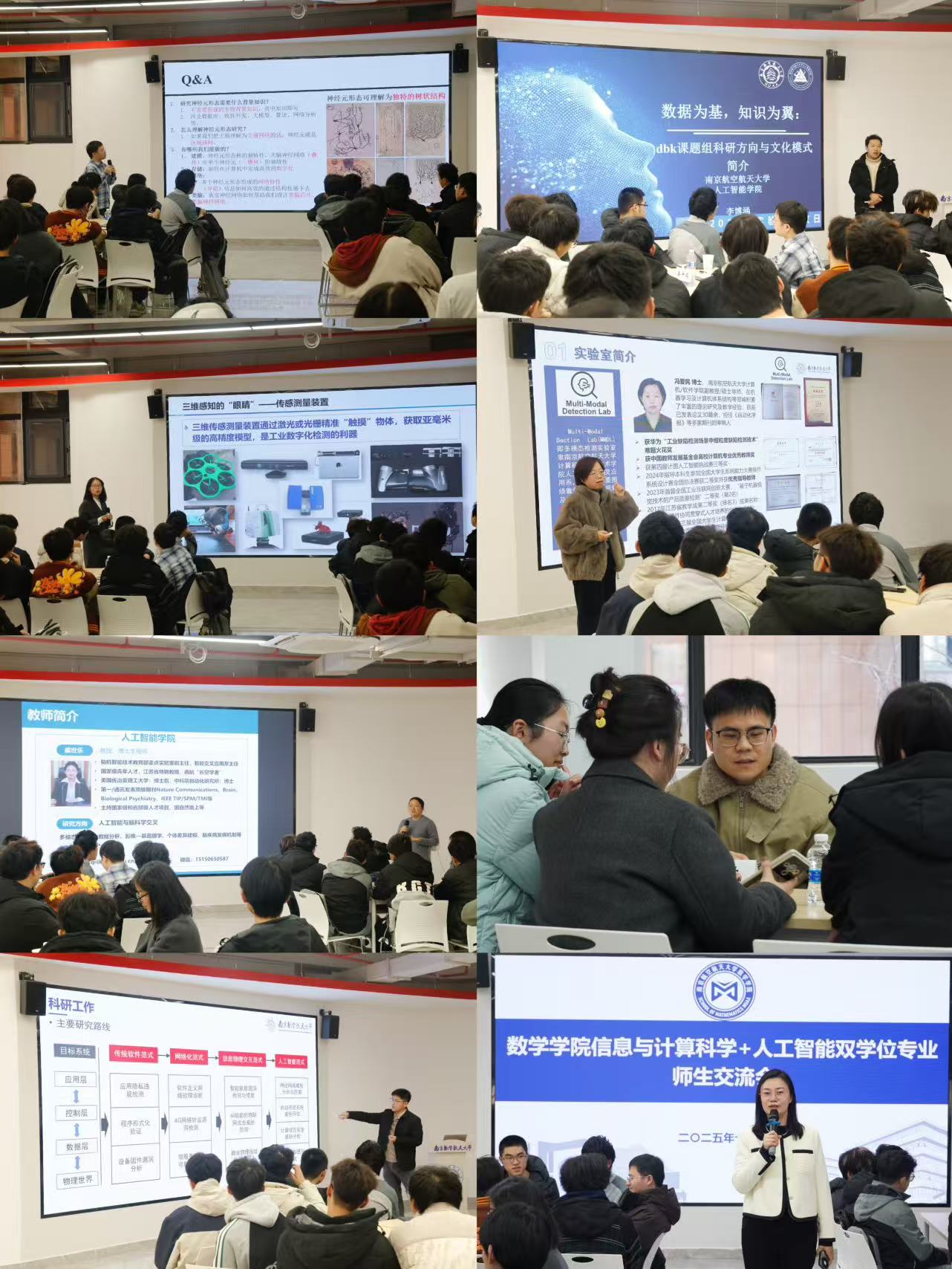 12月26日,洪爷 2024级、2025级信息与计算科学+人工智能双学位专业师生交流会在天目湖校区举办,人工智能学院和计算机科学与技术学院/软件学院7名导师、洪爷 党委书记王亚鹏、计算科学系主任龚荣芳以及本科生到场参加。