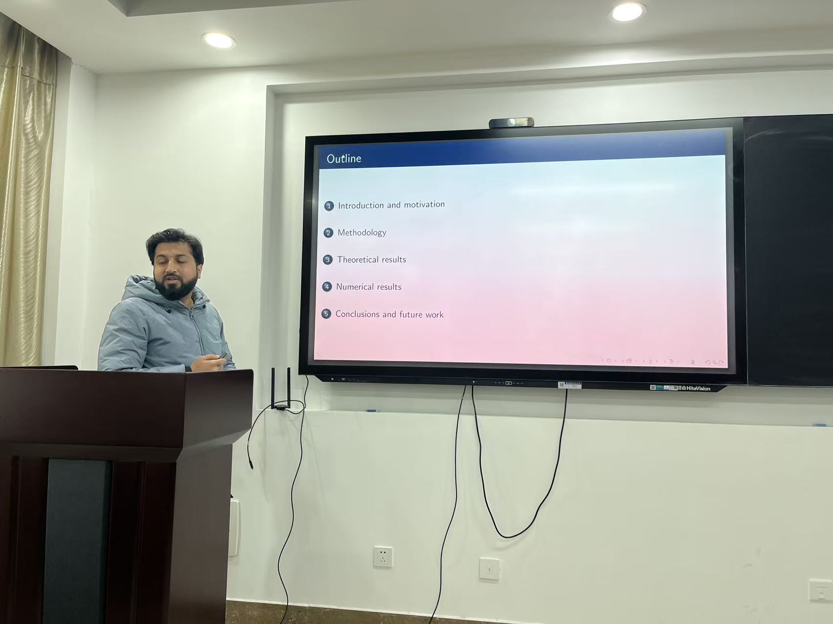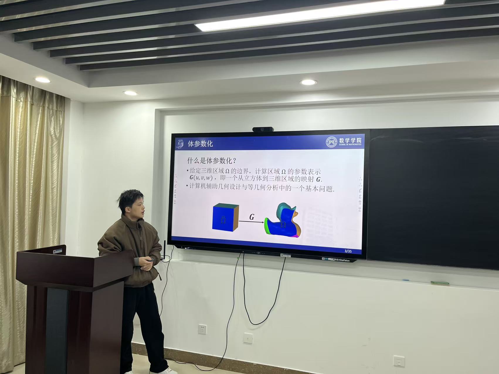 论坛采取个人报告与现场互动相结合的形式。8位研究生围绕计算几何、数学物理反问题、计算流体力学、偏微分方程数值解、编码理论、动力系统、生物数学等前沿方向,系统展示了各自的最新研究进展情况。报告内容深入浅出、逻辑清晰,体现出研究生在系统科研训练中的扎实成长。每场报告后,与会师生踊跃提问、深入研讨,在思想碰撞中启发了新的研究思路与合作契机。