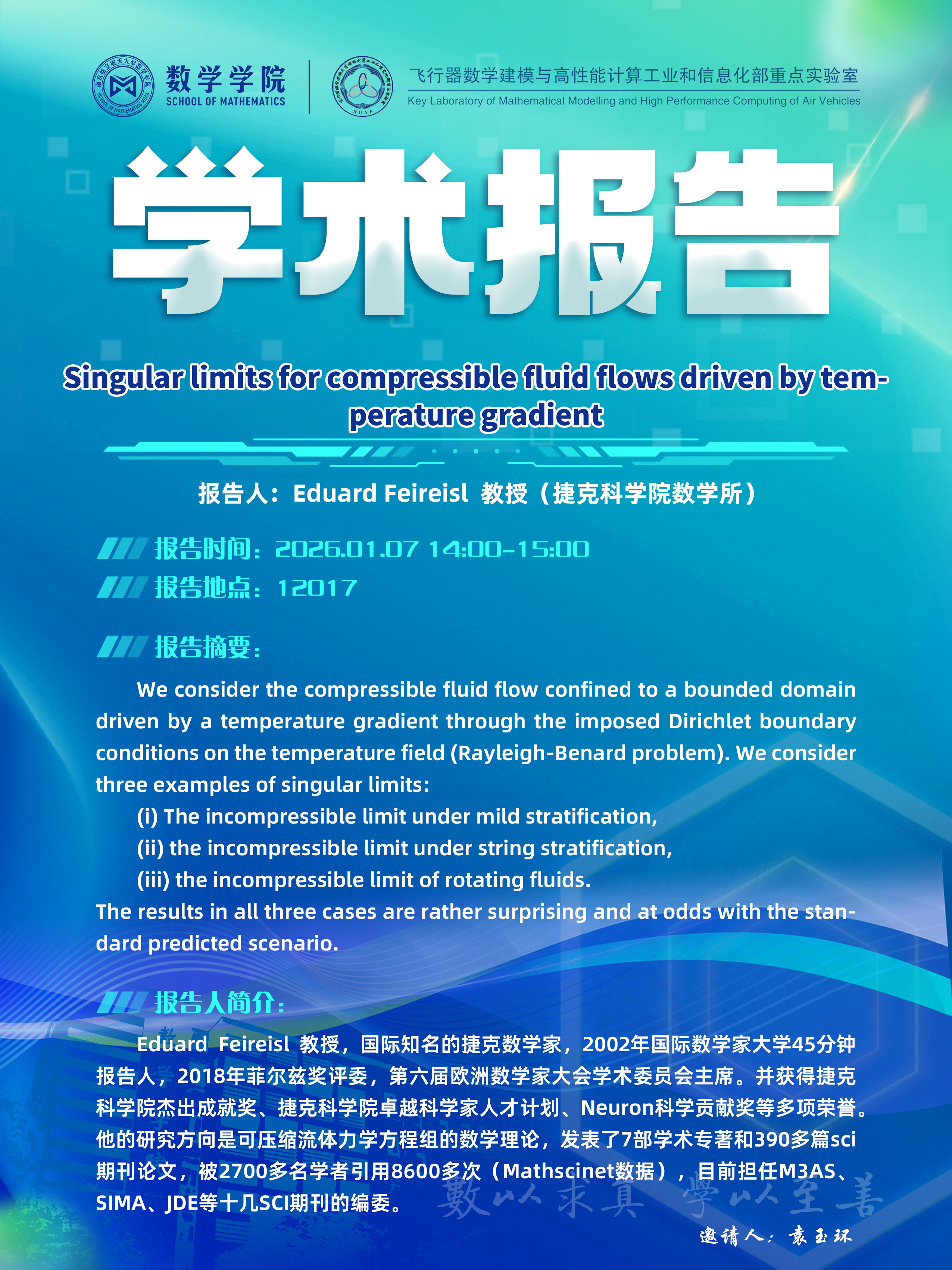 【学术讲座 1.7 Eduard Feireisl 捷克科学院数学所】
